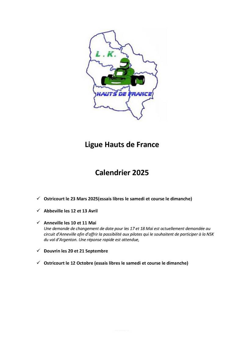 Calendriers 2026 / Organisateurs