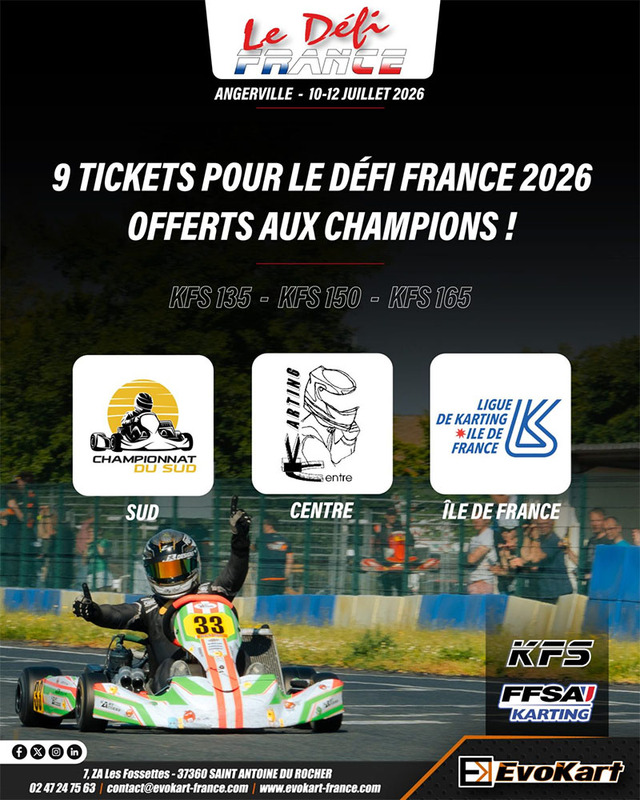 Les vainqueurs des championnats régionaux dans chacune des catégories KFS 135, KFS 150 et KFS 165 se verront offrir un ticket pour participer au Défi France 2026.