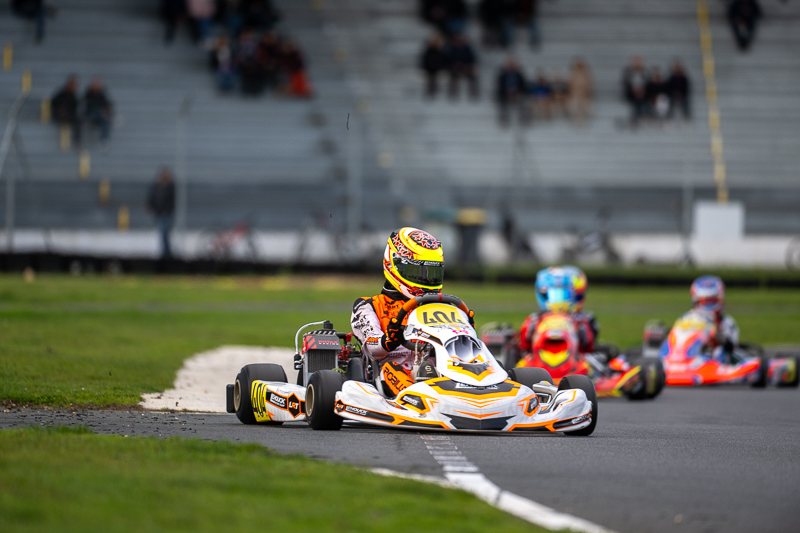 KZ2 : Au démarrage de la compétition, tout semblait sourire aux Franciliens, le trio des « mondialistes » (Héros de Franciacorta) partait devant tout le monde mais parmi eux le Breton T.Blin tombait et la bagarre profitait aux outsiders pour revenir, surtout Enzo Valente qui finissait en trombe. Il l’emportait devant Antoine Broggio, Arthur Lehouck (3) connu en Ligue mais représentant des Hauts de France et Maxime Grillon (4). La seconde finale était problématique. Grillon est accroché au départ, A.Broggio subit une amorce de serrage, puis Valente leader à mi-course est stoppé dans son élan (durite). Le meilleur rescapé est Léo Poncel 5è. Suite à une décision pénalisante du collège, Lehouck fait appel. En conséquence le résultat de la catégorie ne sera pas officiel. On peut constater que Valente et Broggio remontaient à la finale du dimanche mais 4è et 5è ils n’ont pas été en mesure de troubler la lutte pour la gagne (Lehouck-Blin-Y.Soguel). Broggio 4è de la dernière finale ne parviendra jamais à recoller au trio de tête (les mêmes dans un ordre inversé). Valente et Broggio sont supposés être 4 et 5 du général.