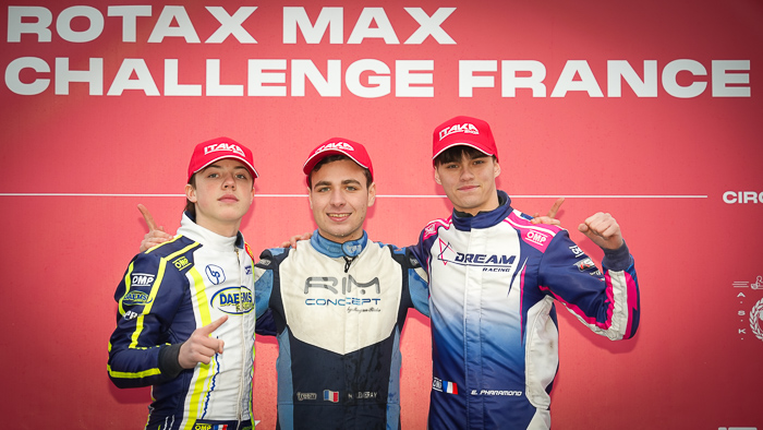 Finale : Owen Baroni (LN/Rotax) effectuait une remontée implacable vers la tête de course depuis la 10e position sur la grille. Il dépassait Léni Robillot Lagache (KR/Rotax) dans le 12e des 15 tours tandis que Timéo Fagot Revurat (CRG/Rotax) le suivait à 3 secondes après une progression de 10 places. Robillot Lagache terminait 3e à 2 dixièmes devant Gabriel Benecchi (Redspeed/Rotax) et Victor Galmiche (Tony Kart/Rotax), bien remonté.